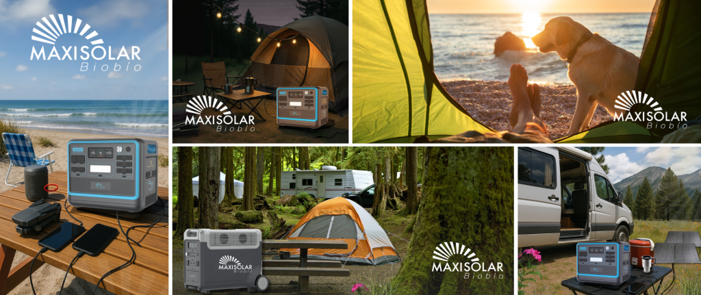 Nuestros generadores solares portátiles, baterías y paneles plegables te permiten cargar dispositivos, iluminar campamentos y mantener tu equipo conectado donde sea que estés. Perfecto para camping, motorhomes o expediciones, Maxisolar Biobío te ofrece libertad, seguridad y autonomía total con energía limpia y silenciosa.